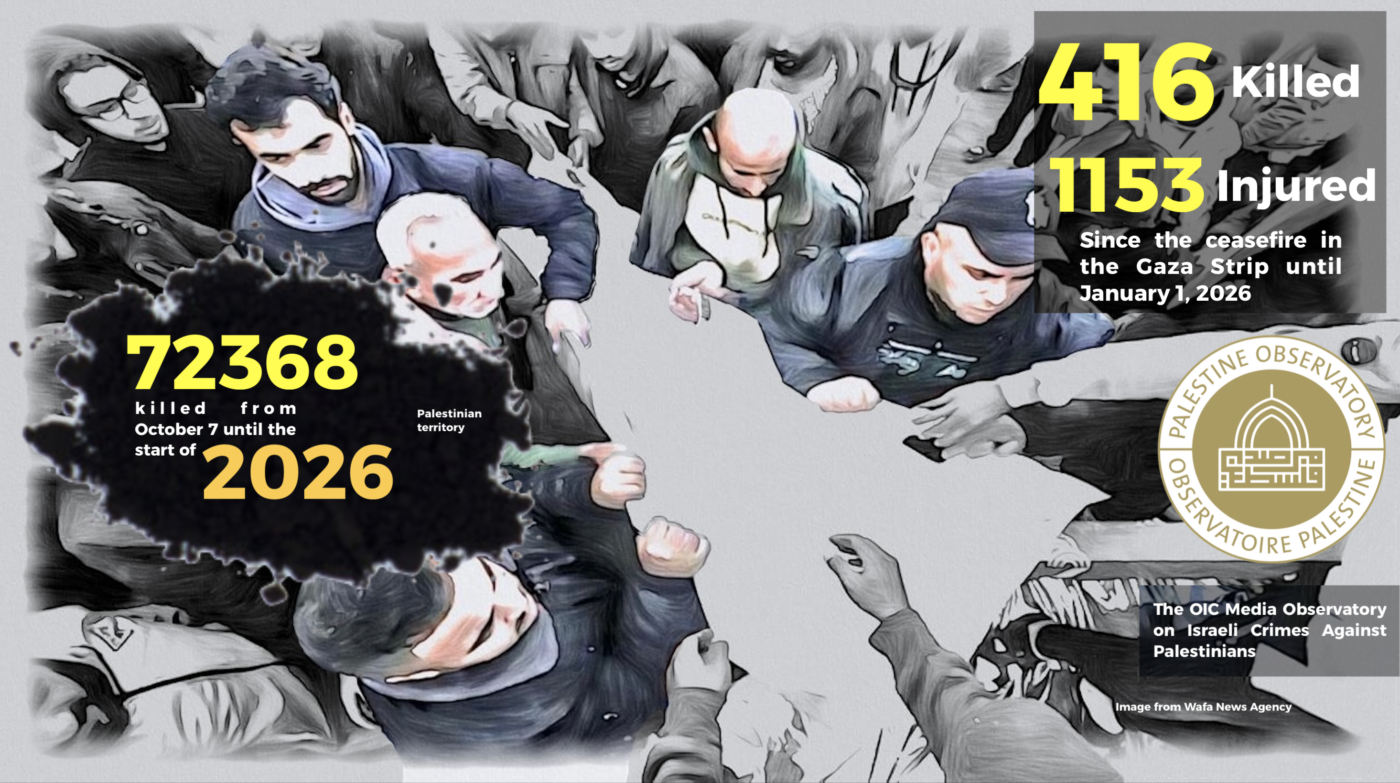 The Israeli occupation demolished 101 houses and pastoral settlement activity increased in the West Bank in 2025 Israeli Settlers Attack Agricultural lands in the West Bank. Archive photo, WAFA News Agency. Ramallah, January 6, 2026 The OIC Media Observatory on Israeli Crimes Against Palestinians recorded the number of Palestinians killed between December 30, 2025, and […]