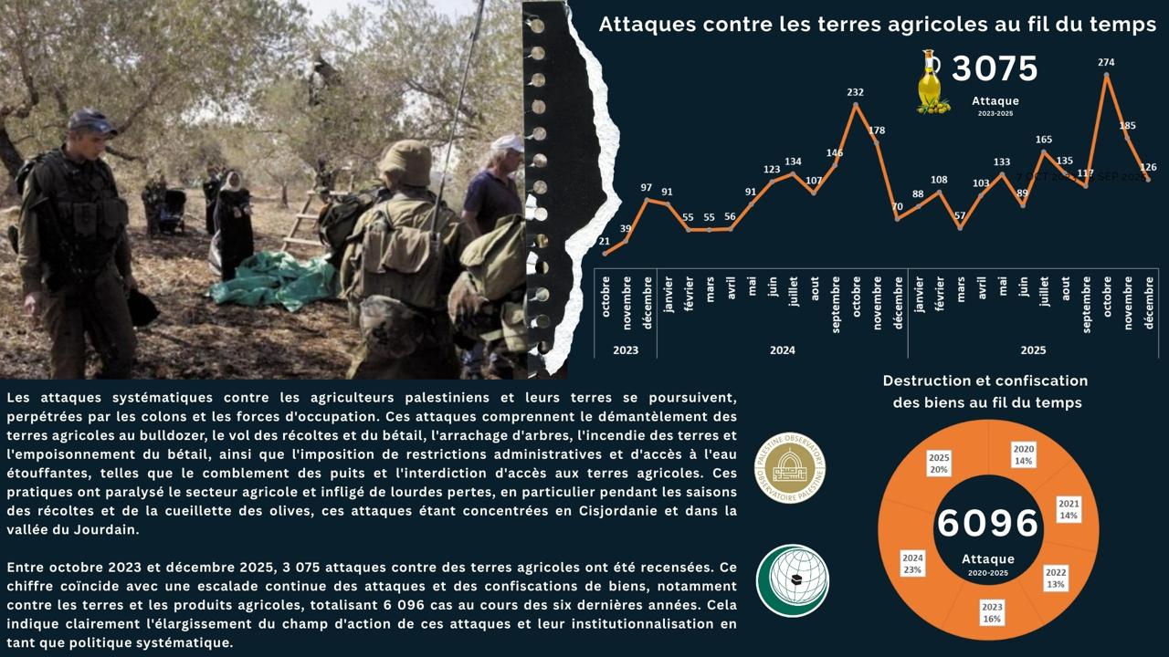 Certains crimes israéliens semblent moins graves que d’autres, mais ils s’accumulent avec le temps et la persévérance et passent souvent inaperçus. Le 25 décembre 2025, près de la source d’Al-Auja à Jéricho, en Cisjordanie, des colons ont délibérément lâché du bétail devant des maisons palestiniennes pour les harceler, dans le cadre d’une stratégie de harcèlement […]