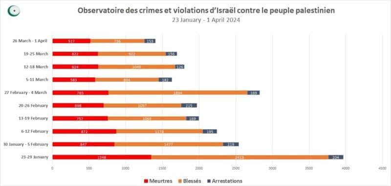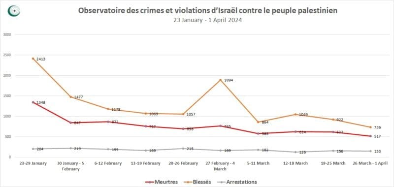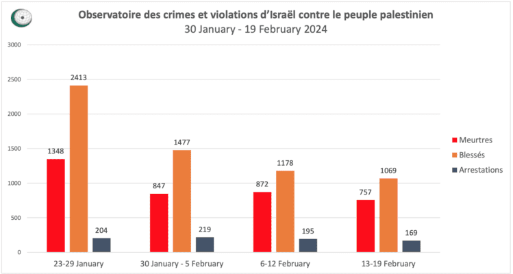 Taux de meurtres et de blessures infligées aux Palestiniens par les forces d’occupation israéliennes