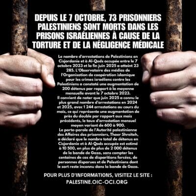 Depuis le 7 octobre, 73 prisonniers palestiniens sont morts dans les prisons israéliennes à cause de la torture et de la négligence médicale.